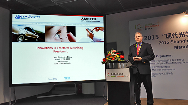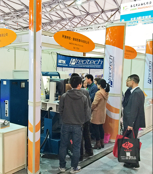 Precitech以及包括TMC和Zygo在内的其他AMETEK业务最近在上海激光世界光电子展上展出。 在我们的展台展出的是我们上海演示实验室的Nanoform X和Levicron空气轴承铣削和磨削主轴。 Precitech的本地销售,应用和服务工程师团队随时准备展示Nanoform X的生产率和易用性特征,包括我们的油静压旋转(B)轴以及Levicron的HSK快换刀架。 这一周在我们的展位上产生了很多兴趣和活动。