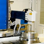 与较大的飞轮类似,这种较小的刀具扫头可以在适合此类减少摆动的较小部件上产生稍好的表面粗糙度。前角和滚转角以及切削深度(非偏转)的刀具调整。6英寸刀具扫描,8英寸外径。(Nanoform 250 Ultra照片中显示的飞轮图像与Planoform 650 Ultra的飞轮相同,但在水平方向上,如下图所示。)